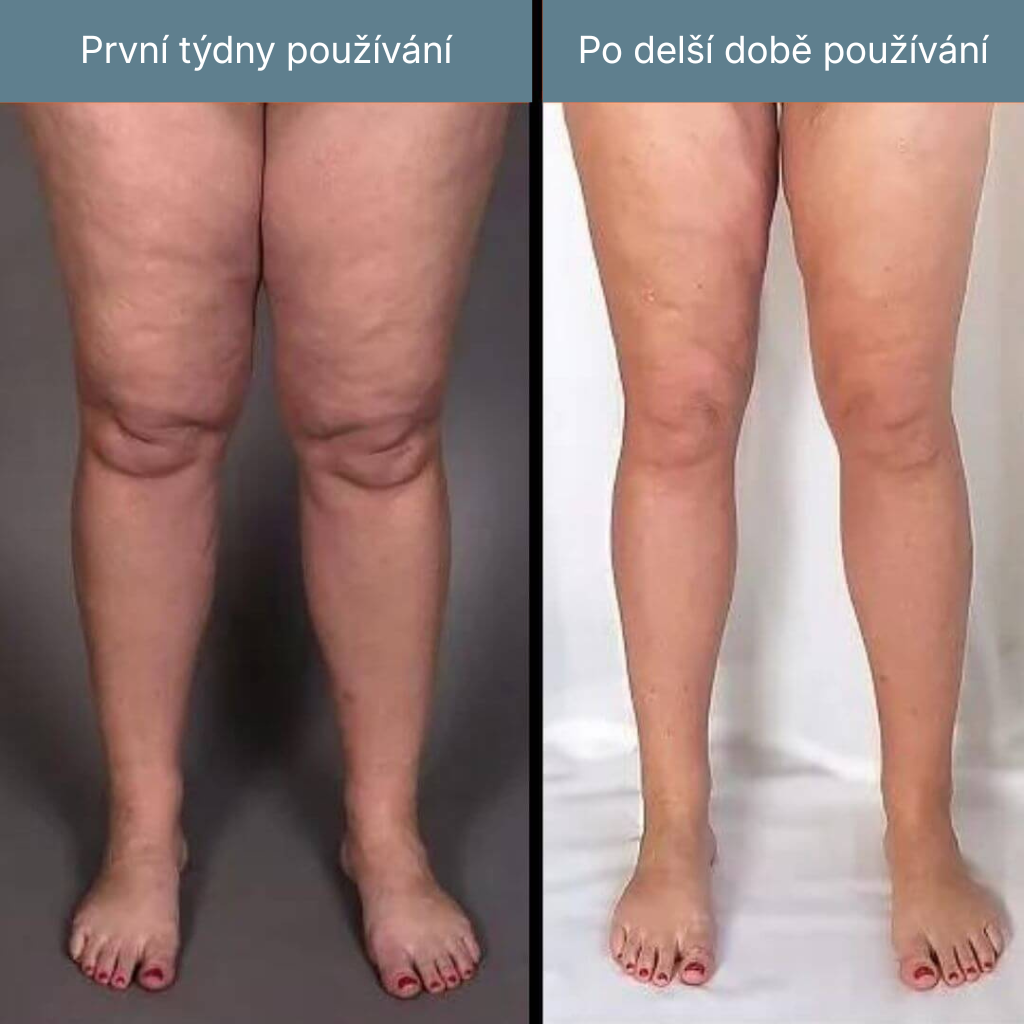 Přidávám fotku před a po, protože rozdíl je pro mě viditelný. Oteklé nohy mě trápily hlavně večer po práci. Používám to pravidelně a otoky se postupně zmenšily, nohy nejsou tak napnuté a těžké jako dřív.