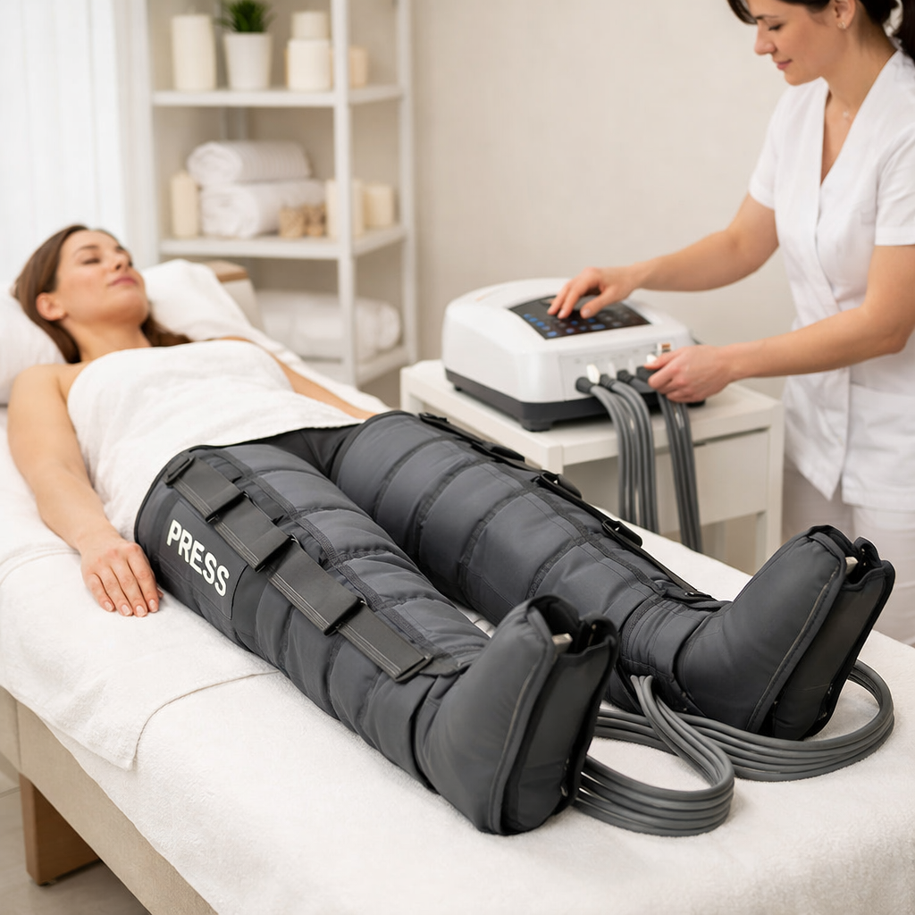 Tlaková masáž podporuje tok krve a lymfy směrem vzhůru, čímž pomáhá snižovat hromadění tekutin v dolní části nohou a přispívá k lepšímu okysličení tkání.
